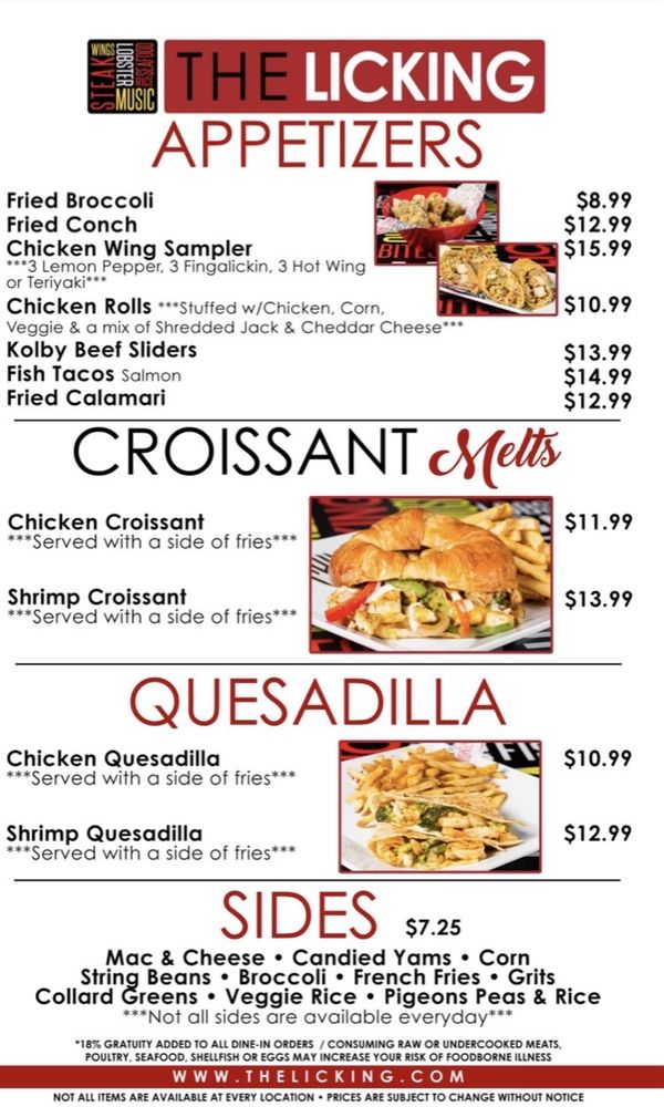 The Licking South Beach is a trendy soul food restaurant specializing in delicious chicken wings in Miami Beach, FL. With options for delivery, takeout, and reservations, this restaurant offers a vibrant atmosphere that's perfect for groups, kids, and late-night dining. The menu features a variety of appetizers like Fried Broccoli and Fried Conch, as well as flavorful pasta dishes such as Steak Alfredo and Shrimp Alfredo. The star of the show, however, is the Fried All Dinners section, including fan favorites like Fried Lobster Dinner and Chicken Wings & Fries. Customers rave about the fresh ingredients, generous portions, and excellent service provided by Chef Berto. If you're looking for a hip, casual spot with mouthwatering comfort food, The Licking South Beach is a must-try.